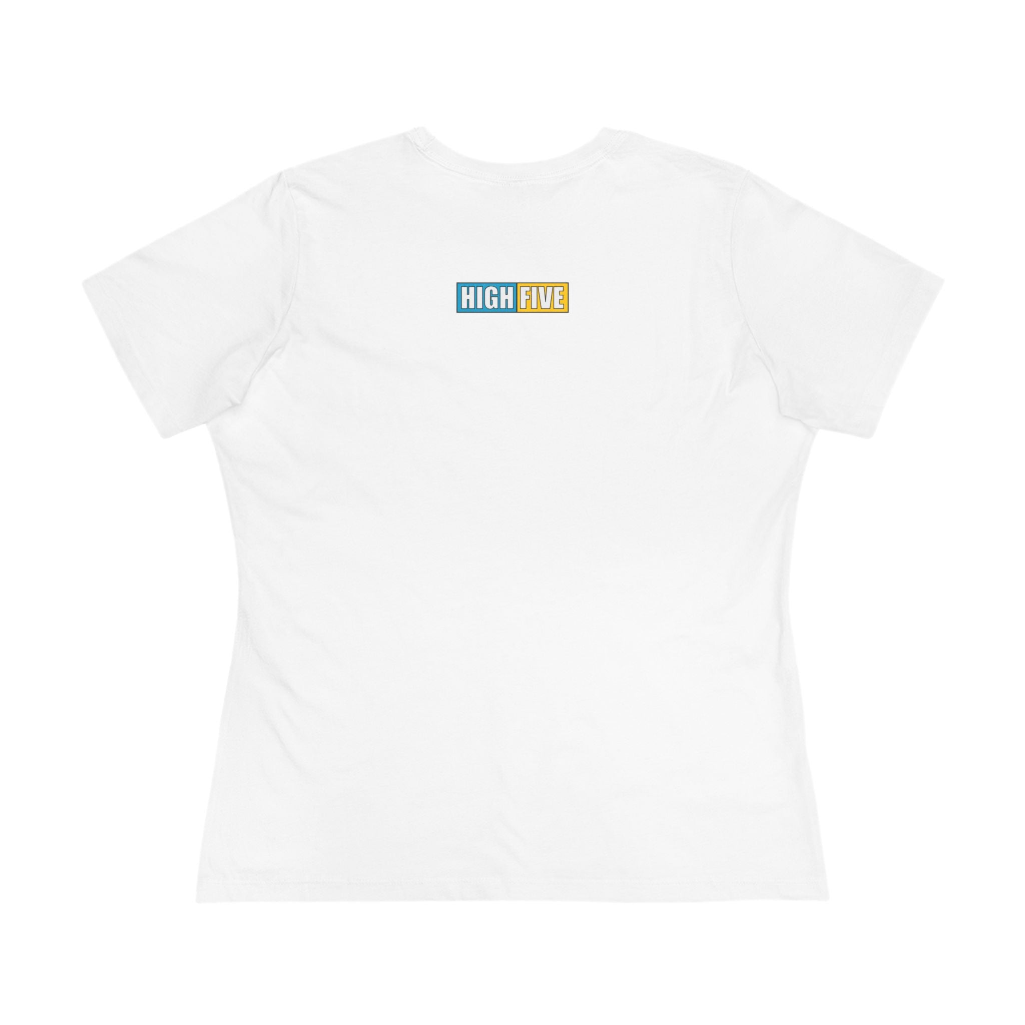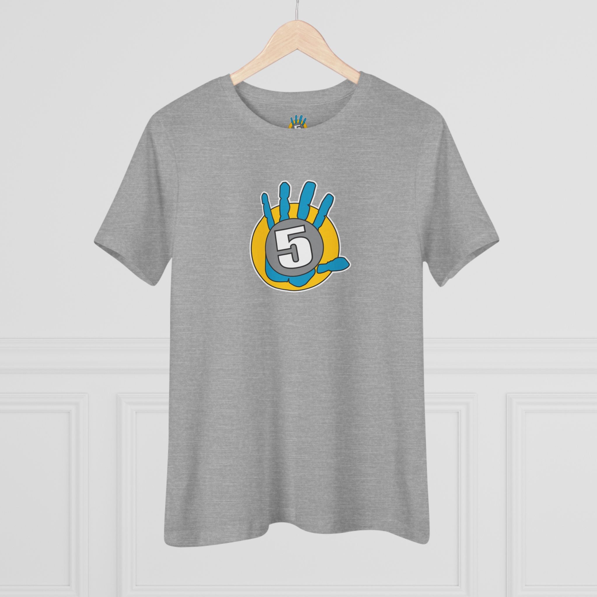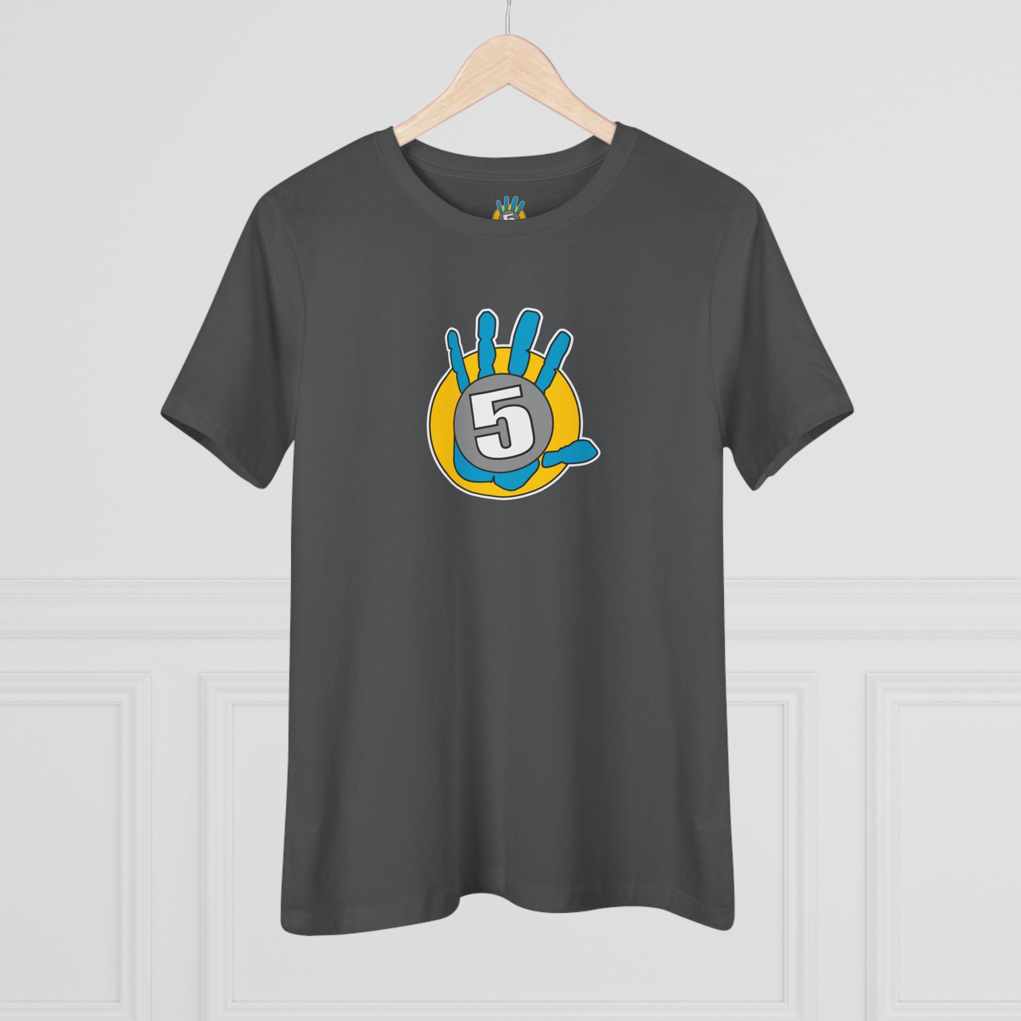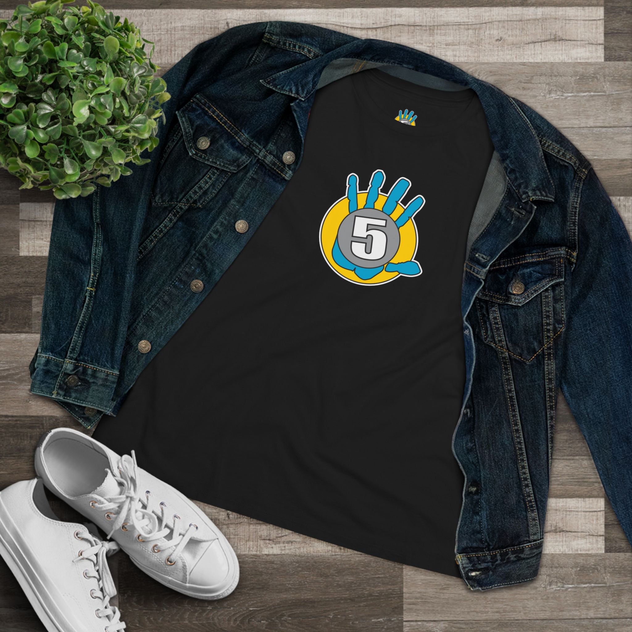 Light, playful, and built for everyday wear — this cotton tee carries a cheerful high-five motif that feels like a small celebration you can wear. The front shows a bold, cartoon hand with a circled number five, while a compact “HIGH FIVE” label sits across the upper back. It’s an easy layering piece that brightens a casual outfit and brings an upbeat, friendly energy to coffee runs, weekend strolls, or low-key hangouts with friends. The relaxed cut and soft, combed cotton make it comfortable all day, while neat ribbed collar and double-stitched hems keep the shape through many washes. Slip it on when you want to share a smile without saying a word.