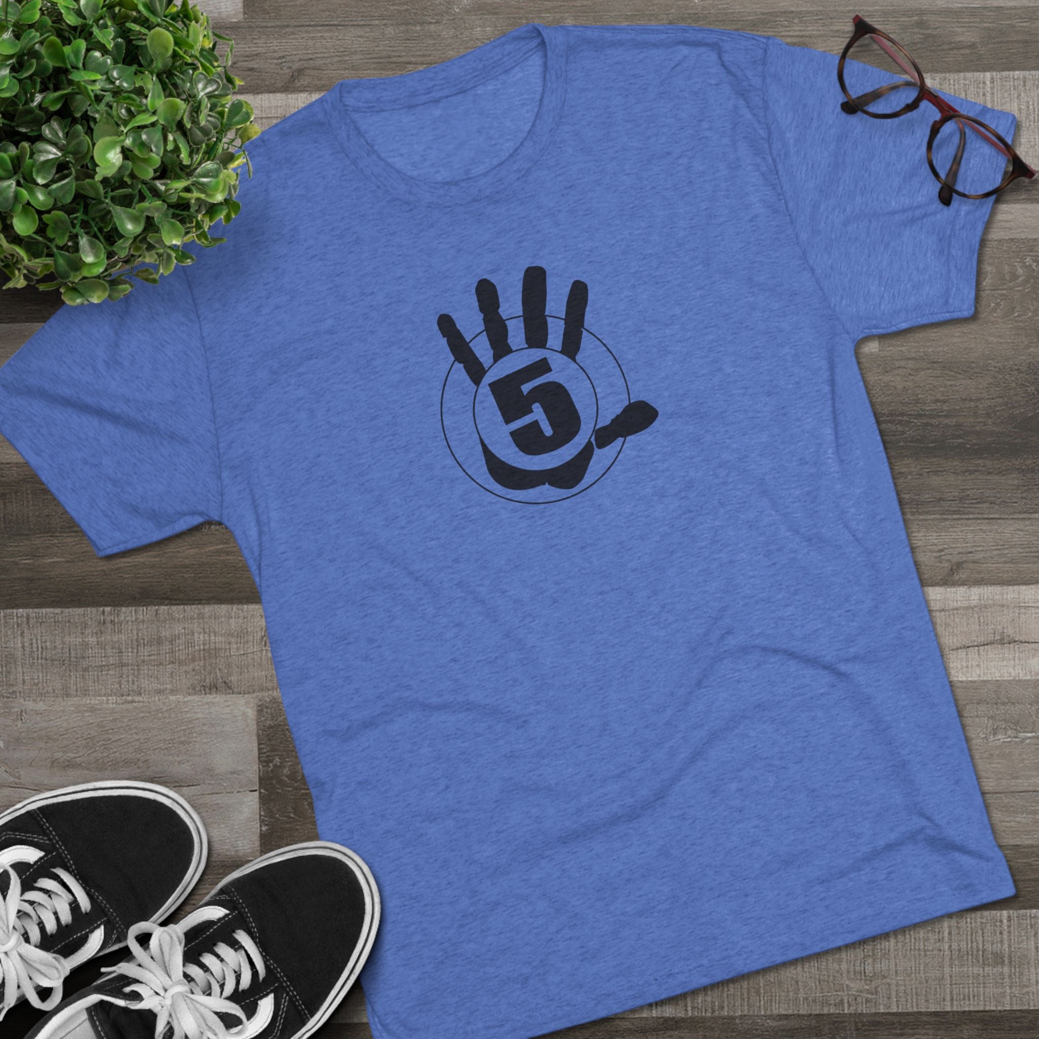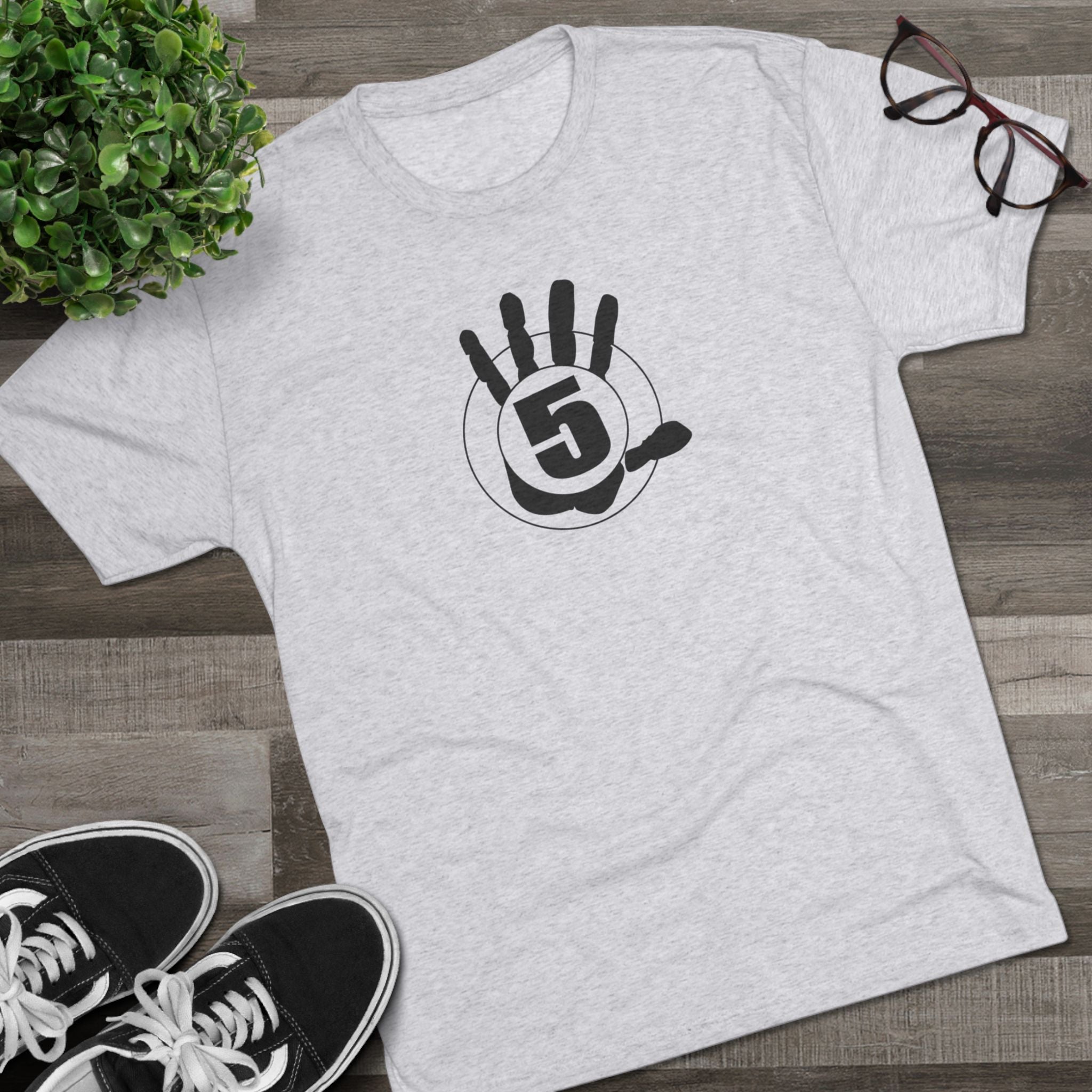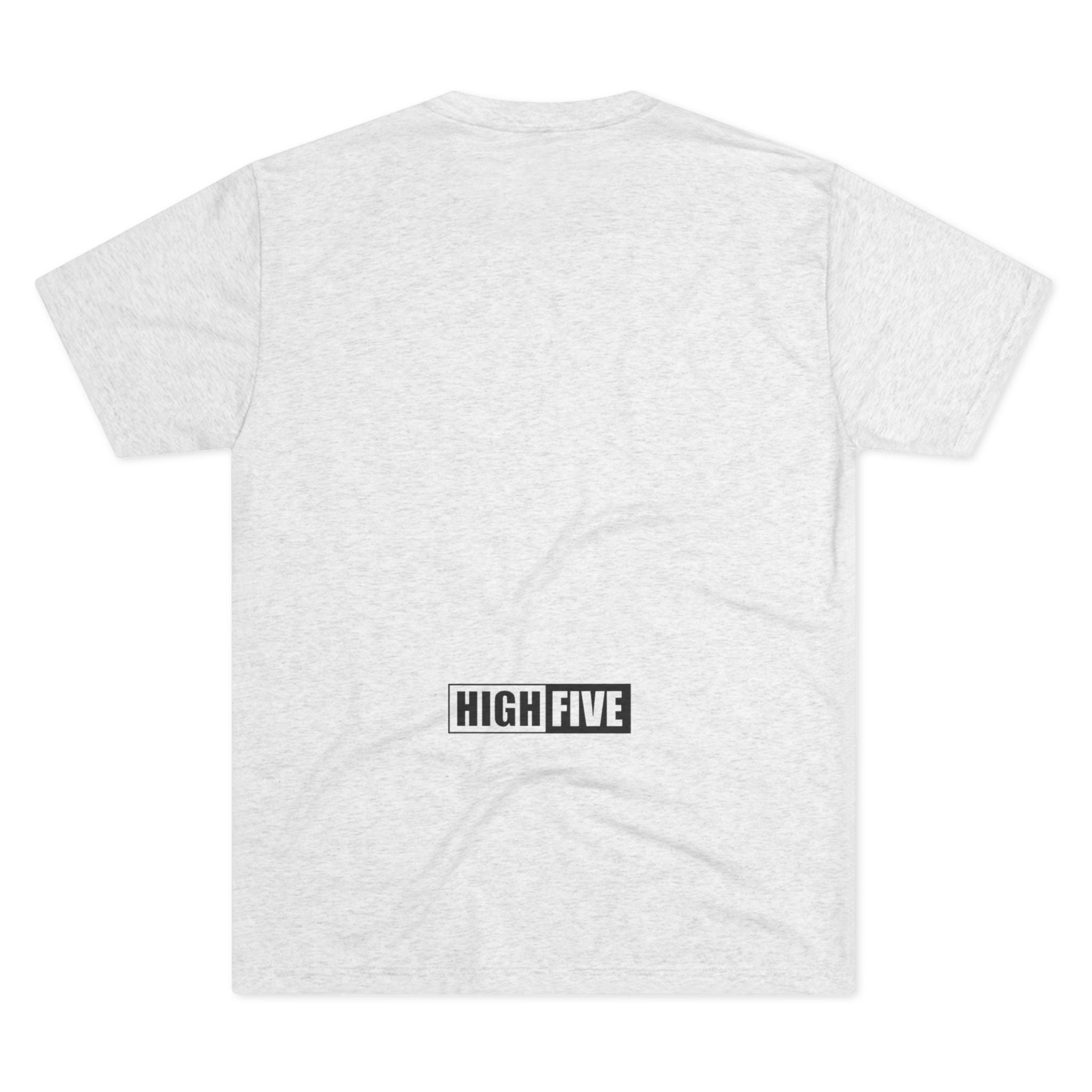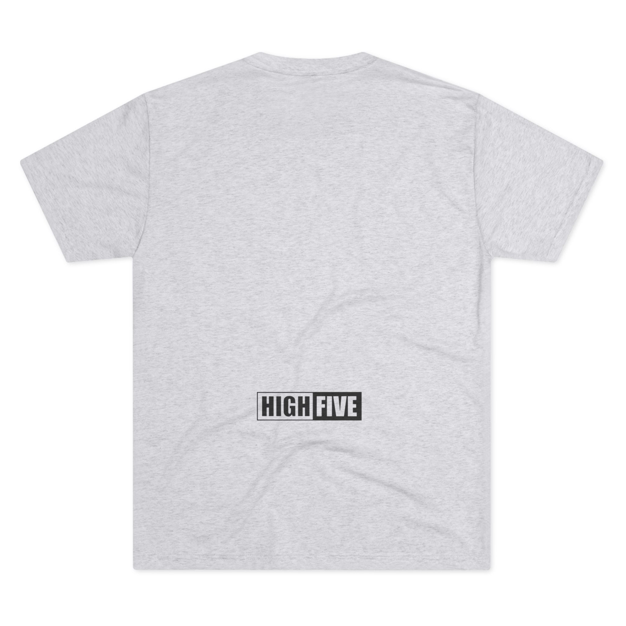 A lightweight, super-soft crew tee that carries a playful nod to camaraderie. The front shows a bold high-five graphic centered over the chest, while the lower back features a subtle "HIGH FIVE" block that pops when you turn around. It drapes beautifully thanks to the tri-blend fabric and keeps its shape with thoughtful construction details, making it comfortable for all-day wear whether you’re hanging out with friends or grabbing coffee after a game. Minimal, confident, and quietly fun — this tee feels like the casual handshake of your closest crew.