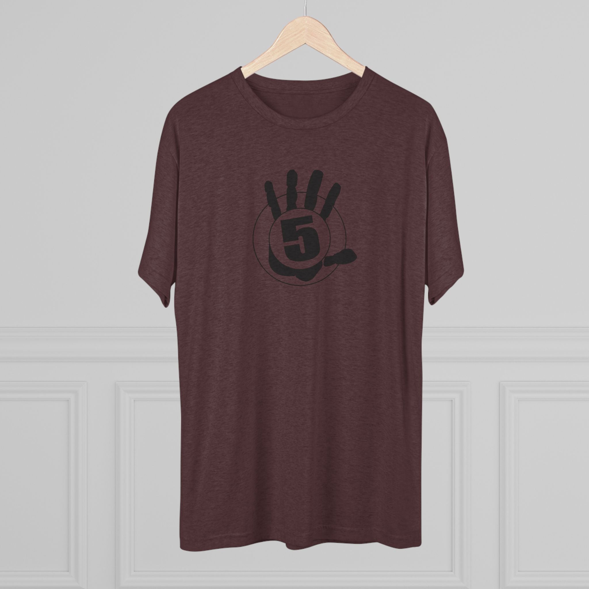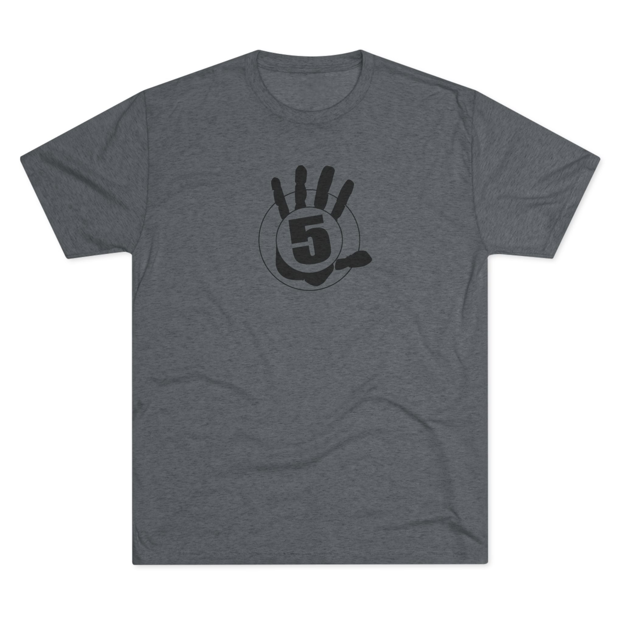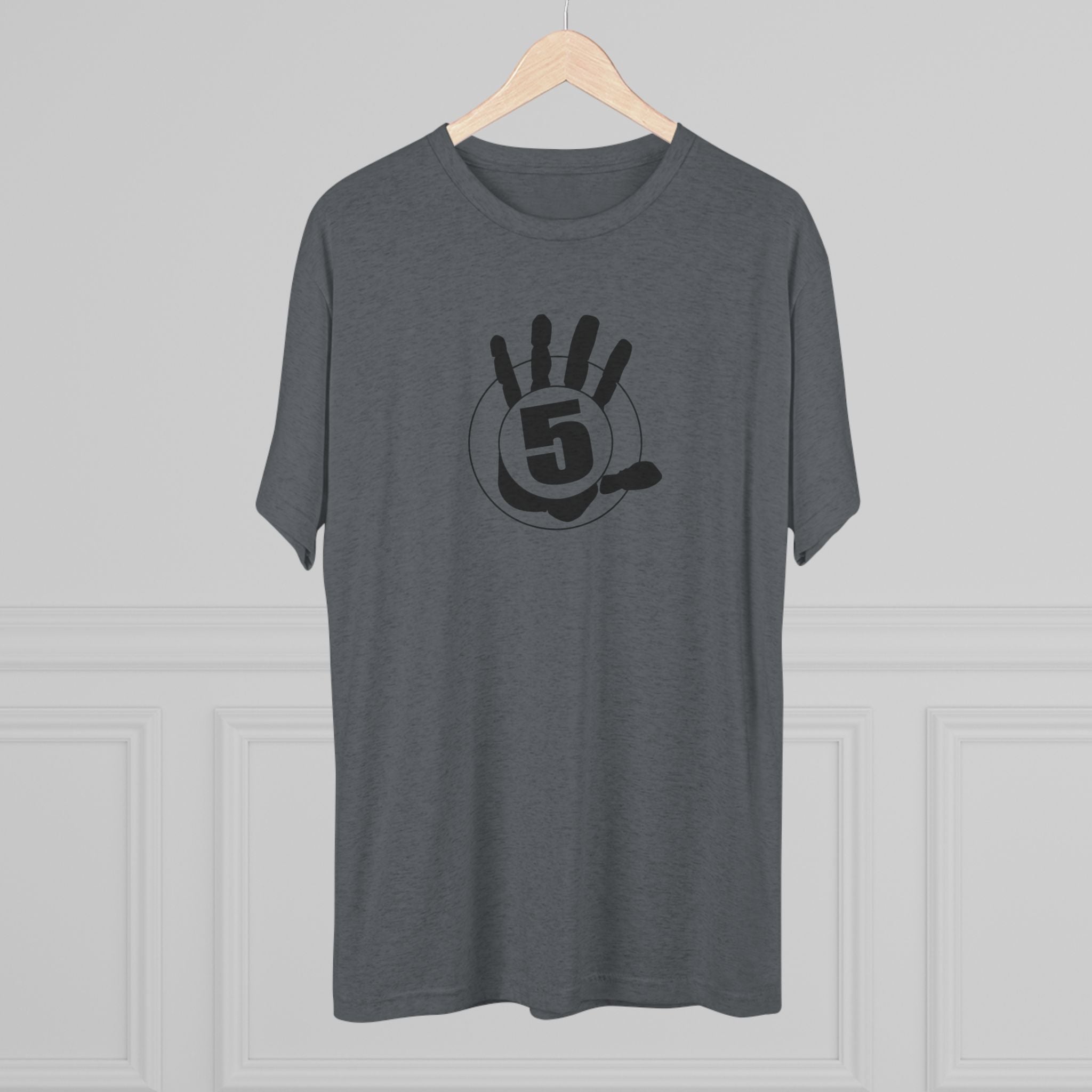 A lightweight, super-soft crew tee that carries a playful nod to camaraderie. The front shows a bold high-five graphic centered over the chest, while the lower back features a subtle "HIGH FIVE" block that pops when you turn around. It drapes beautifully thanks to the tri-blend fabric and keeps its shape with thoughtful construction details, making it comfortable for all-day wear whether you’re hanging out with friends or grabbing coffee after a game. Minimal, confident, and quietly fun — this tee feels like the casual handshake of your closest crew.