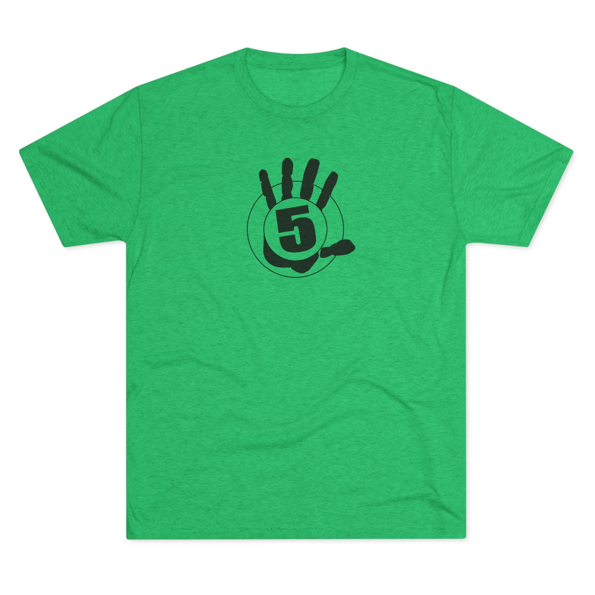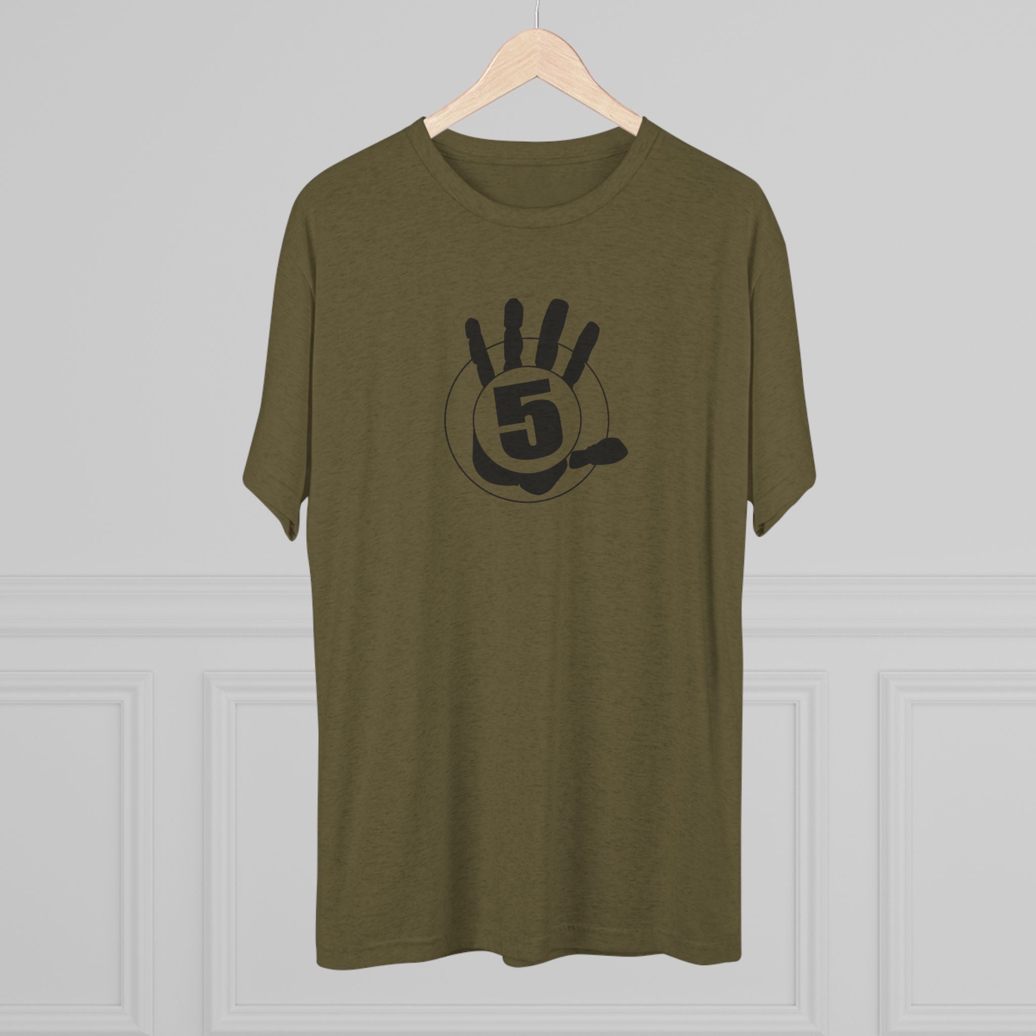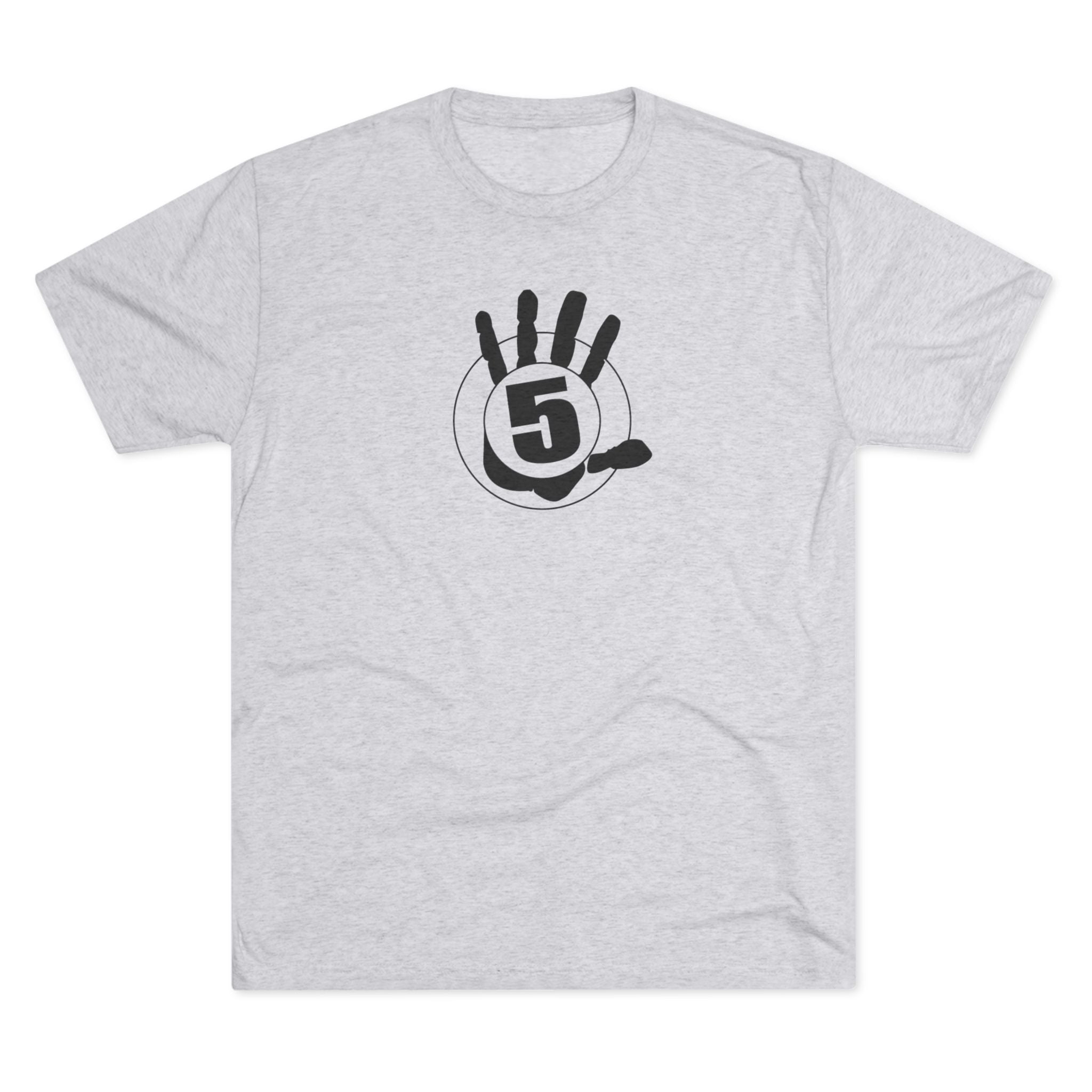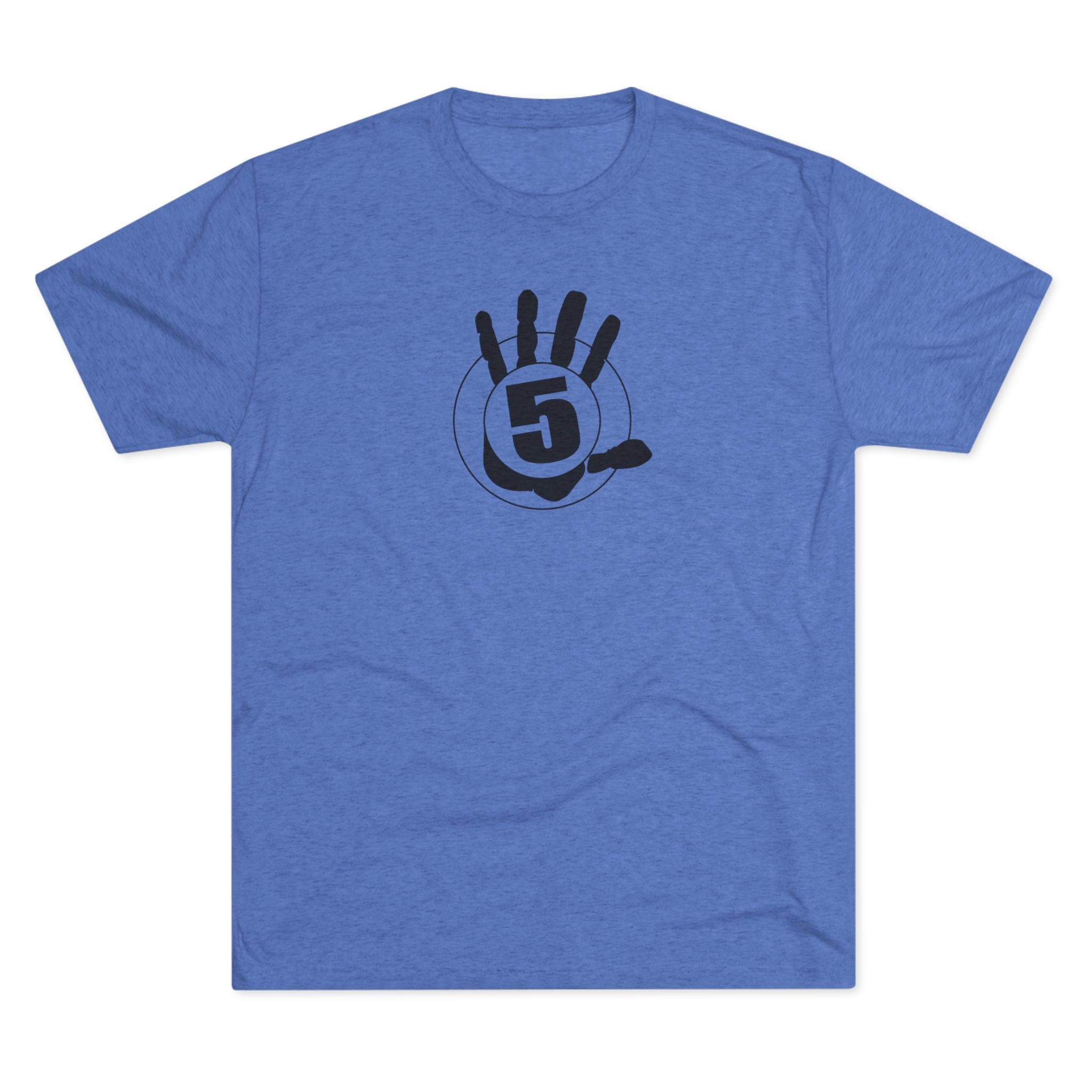 A lightweight, super-soft crew tee that carries a playful nod to camaraderie. The front shows a bold high-five graphic centered over the chest, while the lower back features a subtle "HIGH FIVE" block that pops when you turn around. It drapes beautifully thanks to the tri-blend fabric and keeps its shape with thoughtful construction details, making it comfortable for all-day wear whether you’re hanging out with friends or grabbing coffee after a game. Minimal, confident, and quietly fun — this tee feels like the casual handshake of your closest crew.